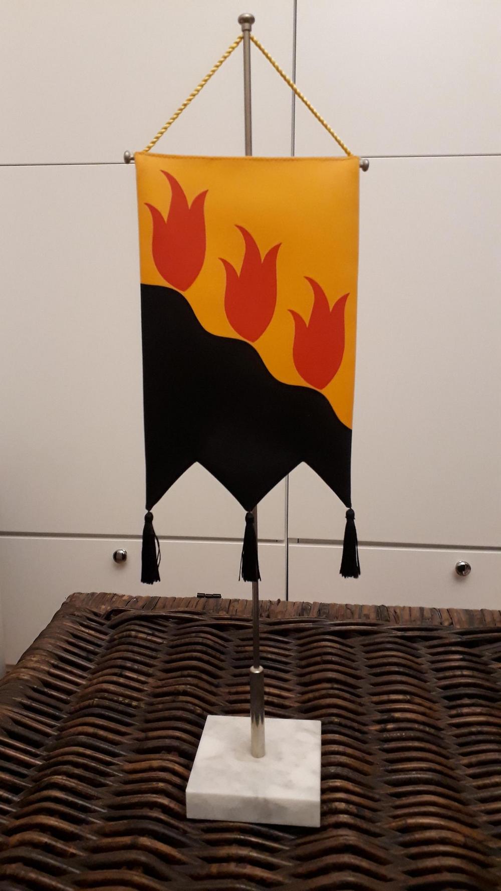 - Leskisten vaakunalla varustettu pöytäviiri, standaari, 70€